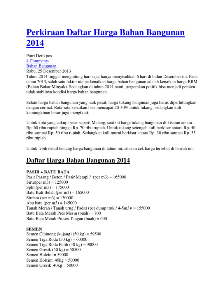 Daftar Harga Material Bangunan Januari 2016 Rumah Dan Gaya Hidup Rumah Com from cdn-cms.pgimgs.com Blimbing, sukun, …sentral bangunan, kota malang. Menyediakan katalog material bangunan di malang Dengan mengetahui standard harga di pasaran, kamu bisa membuat estimasi bujet untuk pembangunan rumahmu. Daftar harga baja ringan 2020 di malang. Sebenarnya jenis bata ringan ada dua, yaitu bata ringan aac dan clc. Berikut kami beritahukan informasi harga atau biaya mandor untu pekerjaan bangunan dihitung per meter persegi di area malang dan batu. Untuk keamanan di rumah yang lebih terjaga, kamu bisa menggunakan kawat duri untuk pagar rumah. Di depo bangunan tersedia cat dan peralatan pendukungnya, perabotan dapur, kamar mandi hingga.